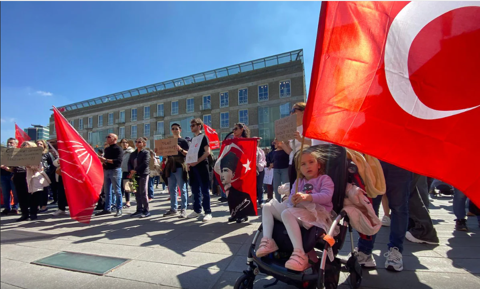 Hollanda’nın Eindhoven kentinde yüzlerce Türk vatandaşı, İstanbul Büyükşehir Belediye Başkanı Ekrem İmamoğlu’nun tutuklanmasını protesto etti. Göstericiler, 18 Eylül Meydanı’nda ellerinde dövizlerle toplandı, hükümet karşıtı sloganlar attı ve demokratik haklarını savundu.